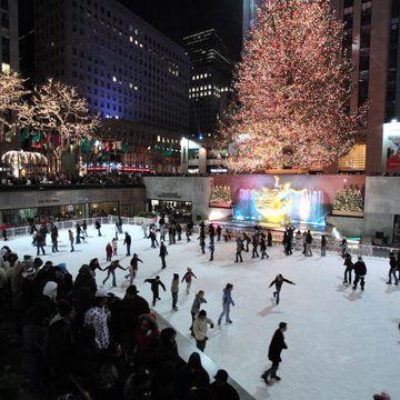 Aula de patinação no gelo em Rockefeller Center